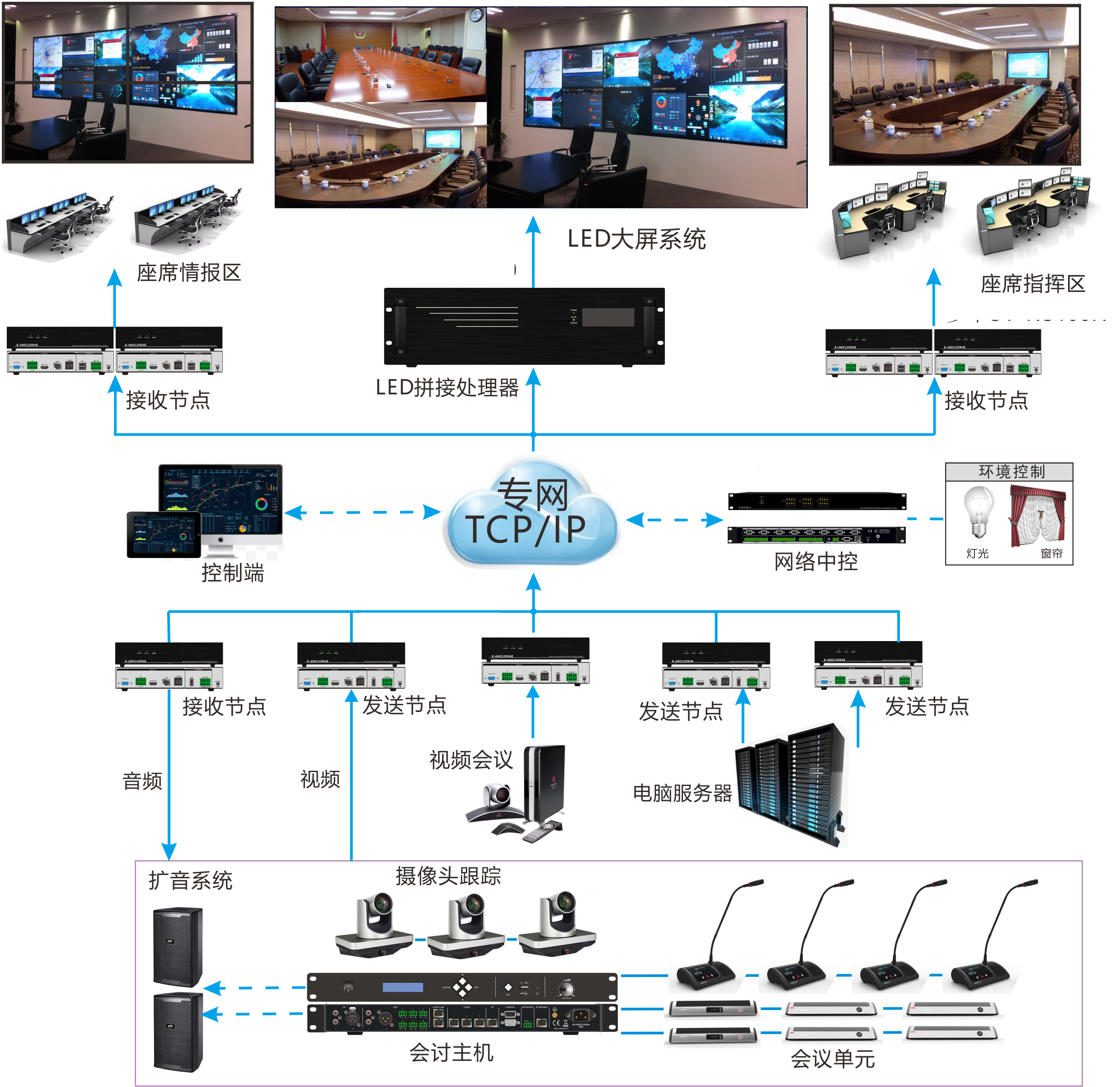 分布式拼接處理系統+WIFI會議系統+多媒體中控系統+對講廣播系統