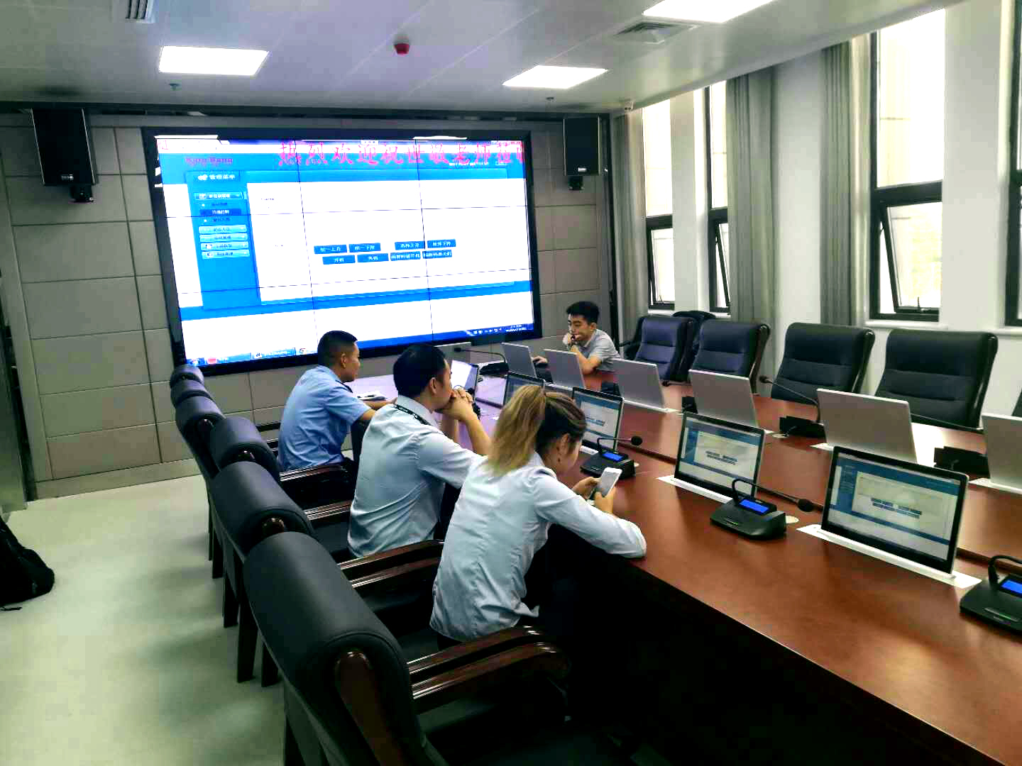 通過(guò)現(xiàn)場(chǎng)技術(shù)工程師安裝調(diào)試,反恐怖情報(bào)中心實(shí)現(xiàn)了系統(tǒng)一鍵開(kāi)關(guān)機(jī)、高清信號(hào)互動(dòng)切換、遠(yuǎn)程音視頻切換、自動(dòng)視像跟蹤、音量控制等等,實(shí)現(xiàn)了音視頻及控制方式全智能型,符合當(dāng)今智能會(huì)議控制系統(tǒng)的要求,也得到畢節(jié)市公安局各領(lǐng)導(dǎo)的高度認(rèn)可和好評(píng)。