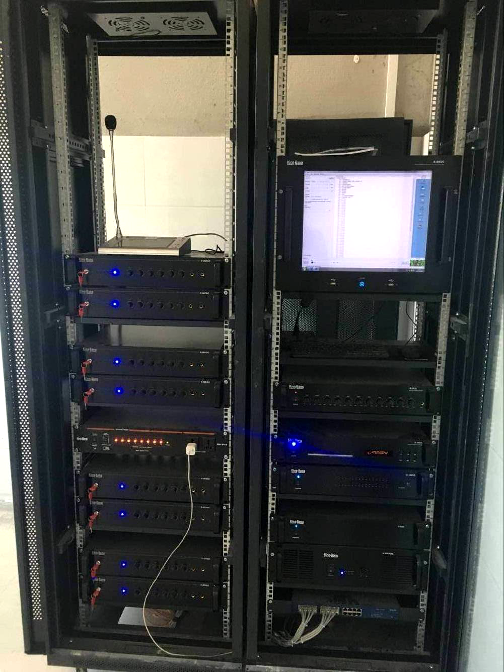 系統主要分布在校園的公共場所、教室、運動場等位置,設置室外音柱和室內音柱。平時可以聯成一個整體或分區播放音樂節目;當發布通知時,播音人員可以將當前背景音樂狀態切換到廣播狀態,進行消息和通知的發布;當發生火警時,則立即切換為緊急廣播,指揮人員疏散。