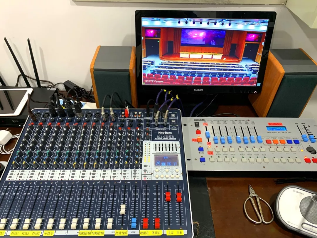 京邦電子(KING-BANG)應項目需求快速組建了專項技術方案團隊,經過不斷的反復研究。為該項目量身打造一套高智能會議系統并成功應用南京信息工程大學濱江學院報告廳