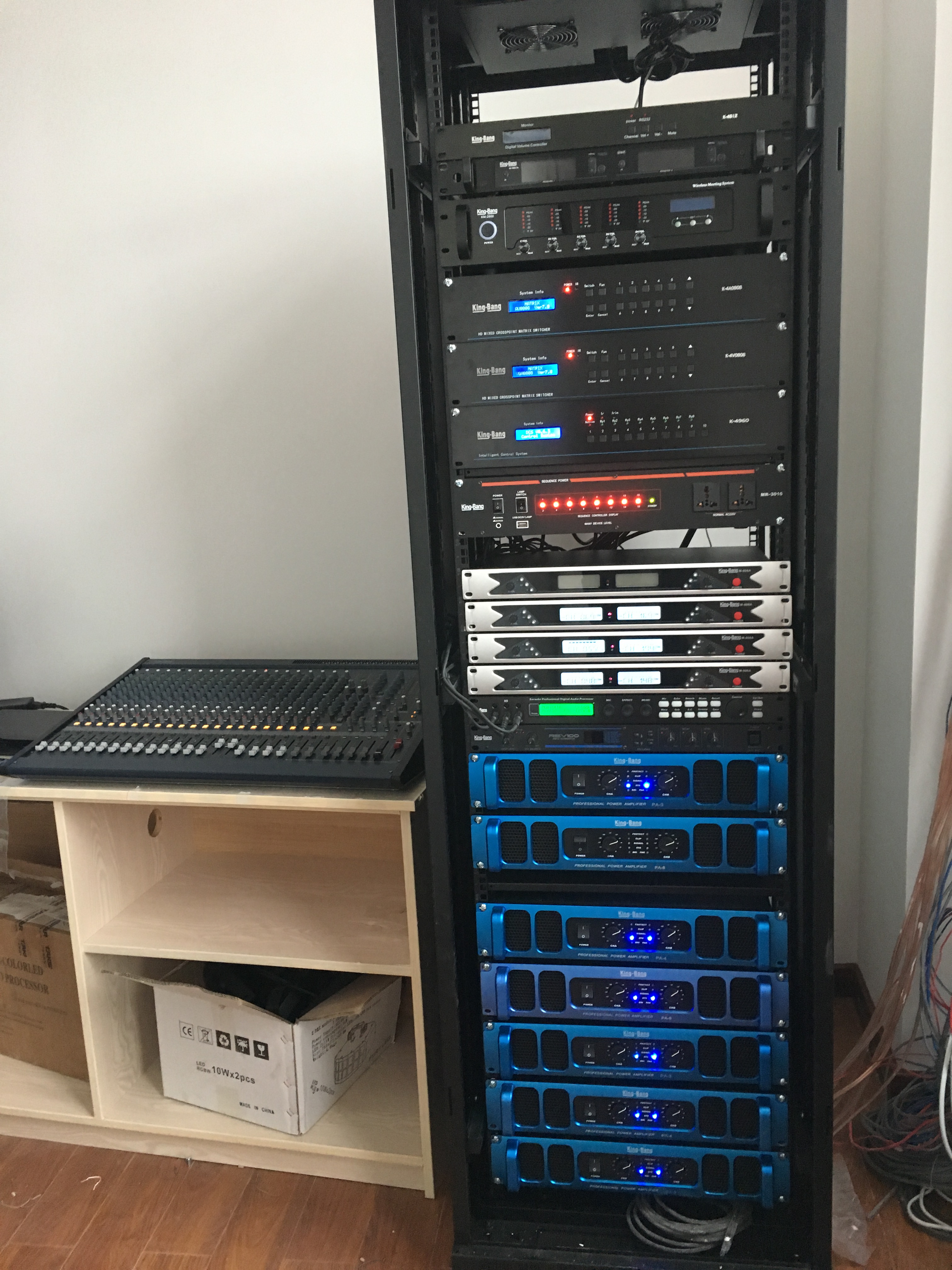 極具代表性的多媒體有源音箱,整套音響系統(tǒng)還包含了帶有LCD顯示面板的具有專(zhuān)利設(shè)計(jì)的PA系列功放,24路調(diào)音臺(tái)MX24C,標(biāo)準(zhǔn)型可編程中央控制系統(tǒng)等等其他處理設(shè)備、話(huà)筒產(chǎn)品,為整個(gè)擴(kuò)聲系統(tǒng)提供了穩(wěn)定有力的保證。所有無(wú)源音箱都采用數(shù)字功放和可完全編程的DSP音頻處理器,保證了多功能廳一流音響效果。