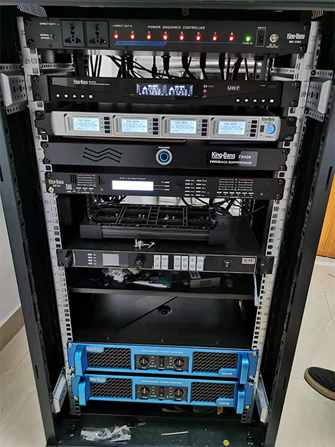 放大設(shè)備——指對經(jīng)過調(diào)控設(shè)備混音輸出、信號處理后的信號進(jìn)行后級功率放大設(shè)備,這里指專業(yè)功率放大器;重放設(shè)備——指將經(jīng)過后級功率放大器放大的音頻信號進(jìn)行電—聲轉(zhuǎn)換并釋放表現(xiàn)出來人耳可懂的聲頻信號的設(shè)備,這里指揚(yáng)聲器;